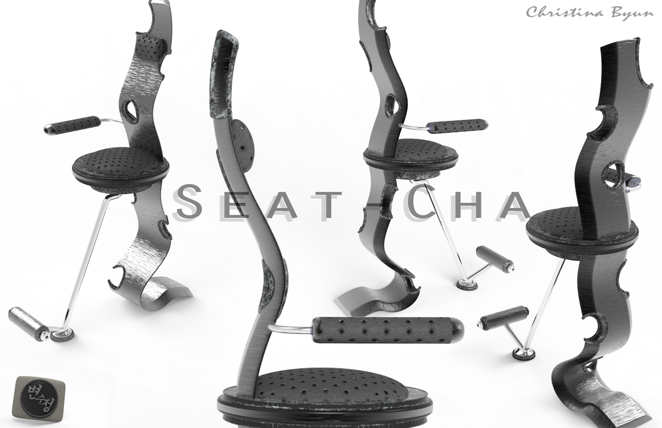 My concept for chair design is the simple and light, which is not too heavy and complicated design. therefore, i create two legs for the chair, one on the back relate with the top, which is the most of the weight will be press on to. and the other leg on the front is foot rest, also holding the weight to the ground. the arm rest is only on the right side, because i wanted to make asymmetrical balanced design. for the materials, i experienced several materials such as plastics, clothes, and metals. i use different colors and positioned several ways to see all sides of the chair.